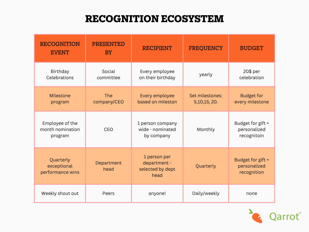 Ready to start building a recognition ecosystem at your organization? Book a demo with Qarrot to see how our platform supports the full spectrum of recognition — from structured programs to everyday appreciation.